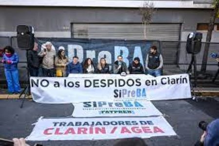 Integrantes de la comisión interna de trabajadores del diario Clarín exigieron «la reincorporación de los trabajadores despedidos» en una conferencia de prensa que brindaron frente a la redacción del matutino, mientras que representantes del Sindicato de Prensa de Buenos Aires (SiPreBA) mantienen una audiencia en el Ministerio de Trabajo con la empresa para que el multimedios «acate la conciliación obligatoria» dictada por la cartera laboral.