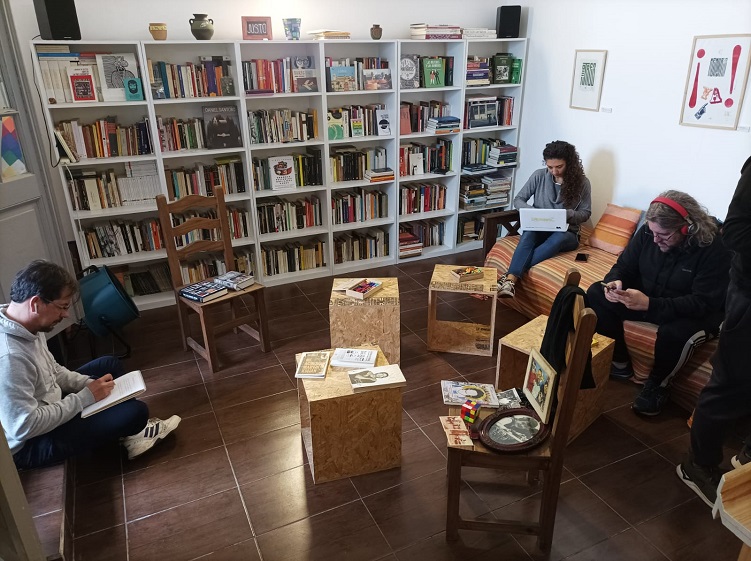 Cuando estamos listos, sacamos nuestros textos. Desenredamos nuestros propios nudos y si podemos ayudamos a los demás. Las palabras, entonces, se sueltan y se esparcen por toda la habitación. Nos rodean, quedan entre nosotros y los libros. Flotan, reptan, dan vueltas, suben y bajan según quien lea y qué es lo que esté contando.