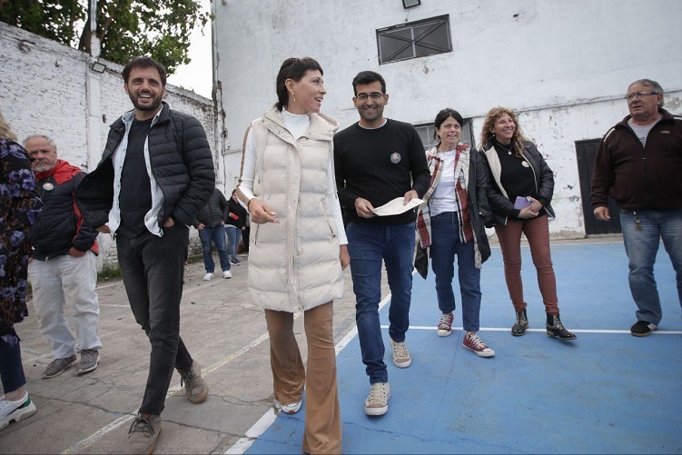 La intendenta de Quilmes, Mayra Mendoza, estuvo este miércoles en la Sociedad de Fomento José Hernández, ubicada en calle 820 Nº 656, de Quilmes Oeste, donde se está construyendo una estructura de contención para su cancha de cemento, en el marco del apoyo a clubes de barrio y entidades que impulsa la Comuna.