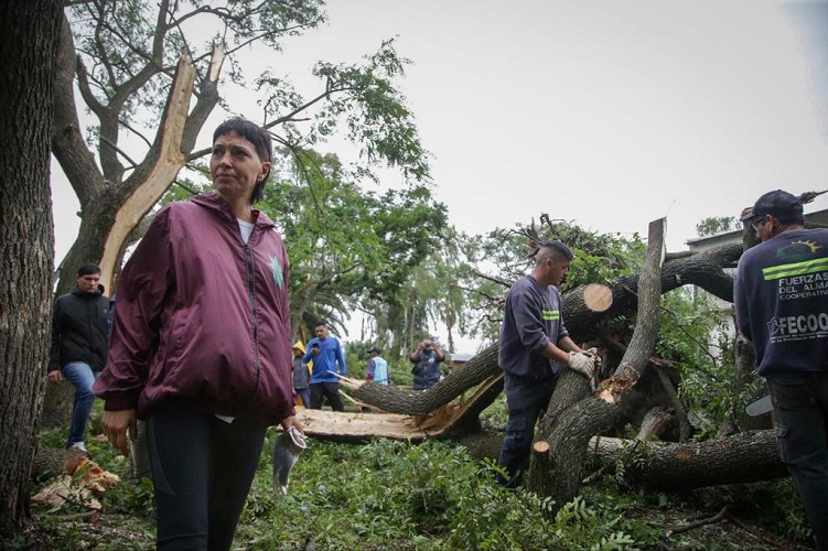 El operativo contó también con la colaboración de 98 trabajadores de tres cooperativas que dispuso la Provincia de Buenos Aires (Fuerza al Alma, Nuevo Horizonte y Las Gaviotas); camiones de servicios públicos, volcadores, retropala y minipala, y cuadrillas de alumbrado público, que estuvieron limpiando y liberando las calles de los árboles y ramas caídos. También se está trabajando en ordenar el posteado y cableado, por los postes de luz caídos y en mal estado, que complican la situación del suministro eléctrico.